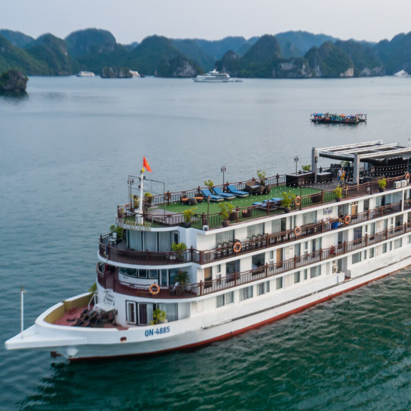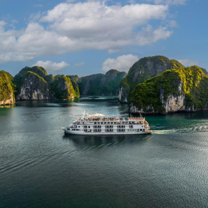 ▪️ Você se banhará no pôr do sol na varanda, seguido de informações fornecidas pela equipe do cruzeiro no lounge. Mais tarde, um jantar de boas-vindas o aguarda. Ao aproximar-se de Cai Be, o navio lançará âncora no meio do rio. Pernoite em Cai Be.