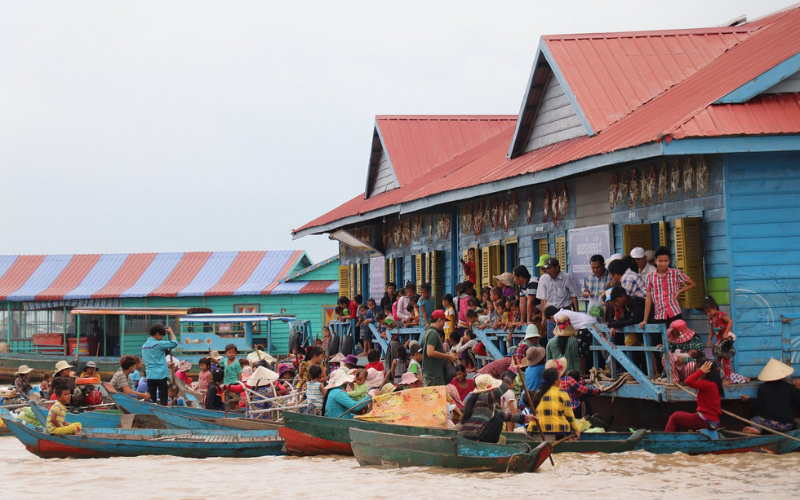 Preah Ang Chek e Preah Ang Chhom▪️ Pela manhã, visitaremos a aldeia flutuante de Chong Khneas, localizada a 10 quilômetros ao sul de Siem Reap. Em seguida, embarcaremos em um barco tradicional de madeira para um passeio pelo Lago Tonle Sap, conhecido como o "Grande Lago" do Camboja, um dos maiores da Ásia.
