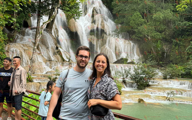 Turistas da empresa Viet Prestige Travel em Cachoeiras Khouangsi▪️ Manhã livre para explorar a cidade de Luang Prabang e seus mercados locais por conta própria.