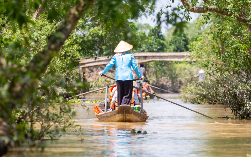 - Delta do Mekong: Experimente a vida rural no delta, com passeios de barco pelos canais, mercados flutuantes e degustação de frutas tropicais frescas.