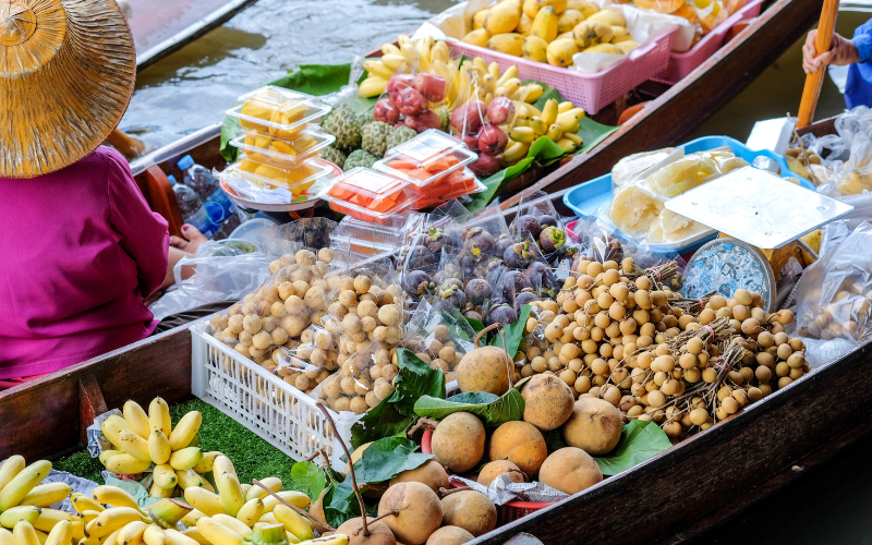 - Mercado Flutuante Damnoen Saduak: Vivencie a experiência única dos mercados flutuantes, onde você pode comprar produtos frescos e artesanato diretamente dos barcos.