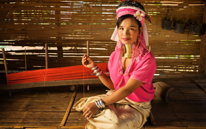 ▪️ Após o café da manhã, seu guia turístico irá encontrá-lo por volta das 8h e levá-lo à vila da tribo Karen de Pescoço Longo. Os membros desta tribo, conhecidos por usarem colares de anéis que alongam o pescoço, foram realocados da fronteira entre a Tailândia e Mianmar.