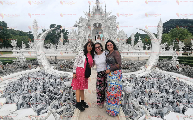 Turistas da Viet Prestige Travel em Wat Rong Khun▪️ O Triângulo Dourado é uma região misteriosa para muitos turistas que visitam a Indochina. Hoje, você desfrutará de uma excursão de dia inteiro pelo coração desta área fascinante.
