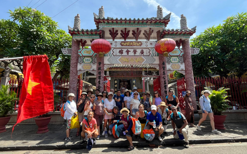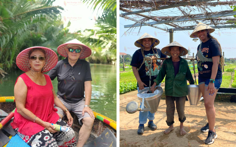 Salão da Assembleia de Phuoc Kien - ▪️ Seu guia o encontrará no saguão do hotel e você irá pedalar pelos arredores de Hoi An em direção à vila de vegetais Tra Que. Cerca de 150 agricultores e 400 proprietários vivem e cultivam cerca de 20 tipos de vegetais e ervas, como hortelã, alface, manjericão, coentro, brócolis, entre outros.▪️ Caminhe pela vila de vegetais Tra Que e conheça os moradores locais que trabalham no jardim. Durante a caminhada, você atravessará vastos campos de arroz e estradas tranquilas, longe das trilhas turísticas. Você verá as atividades dos habitantes das vilas de Hoi An.▪️ Continue pedalando pelos campos de arroz, mercado Ba Le, escola infantil... até chegar à vila de pescadores Van Lang e à floresta de coco d'água Bay Mau - com cerca de 7 hectares, cercada por florestas de mangue, canais e casas cobertas por folhas de coco d'água.▪️ Você será calorosamente recebido na casa do Sr. Han - uma família de três gerações - para um chá verde e um passeio pela vila. Você remará um barco de cesta com as mãos habilidosas dos moradores locais e descobrirá suas técnicas tradicionais de pesca na floresta de coco d'água.▪️ De volta à casa do Sr. Han, você desfrutará de um banho de pés com ervas medicinais, uma prática terapêutica tradicional, antes de se preparar para o almoço com uma família local. O almoço incluirá várias iguarias locais, como rolinhos primavera Tam Huu, panquecas locais Banh Xeo, peixe grelhado em folha de bananeira, entre outros. Faça uma breve pausa antes de retornar ao hotel por volta das 15h30. Tempo livre.▪️ Pernoite em Hoi An.