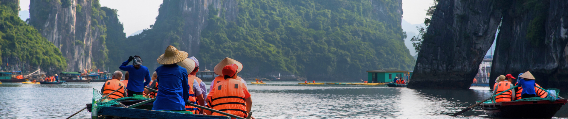 ▪️ Você chegará a Ha Long por volta do meio-dia. Embarque imediato em um cruzeiro de 2 dias e 1 noite a bordo de um belo barco tradicional, transformado em um hotel flutuante de madeira, para descobrir uma das baías mais magníficas do mundo.