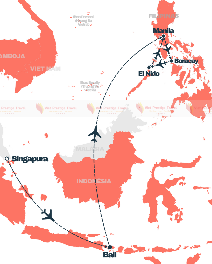 Embarque em uma viagem inesquecível de 18 dias por Singapura, Bali e as maravilhas das Filipinas. Descubra a vibrante metrópole de Singapura, relaxe nas praias paradisíacas de Bali e explore a rica cultura e natureza deslumbrante das Filipinas, passando por Manila, Boracay e El Nido. Este passeio oferece o equilíbrio perfeito entre aventura, relaxamento e imersão cultural, levando você aos lugares mais fascinantes do Sudeste Asiático.