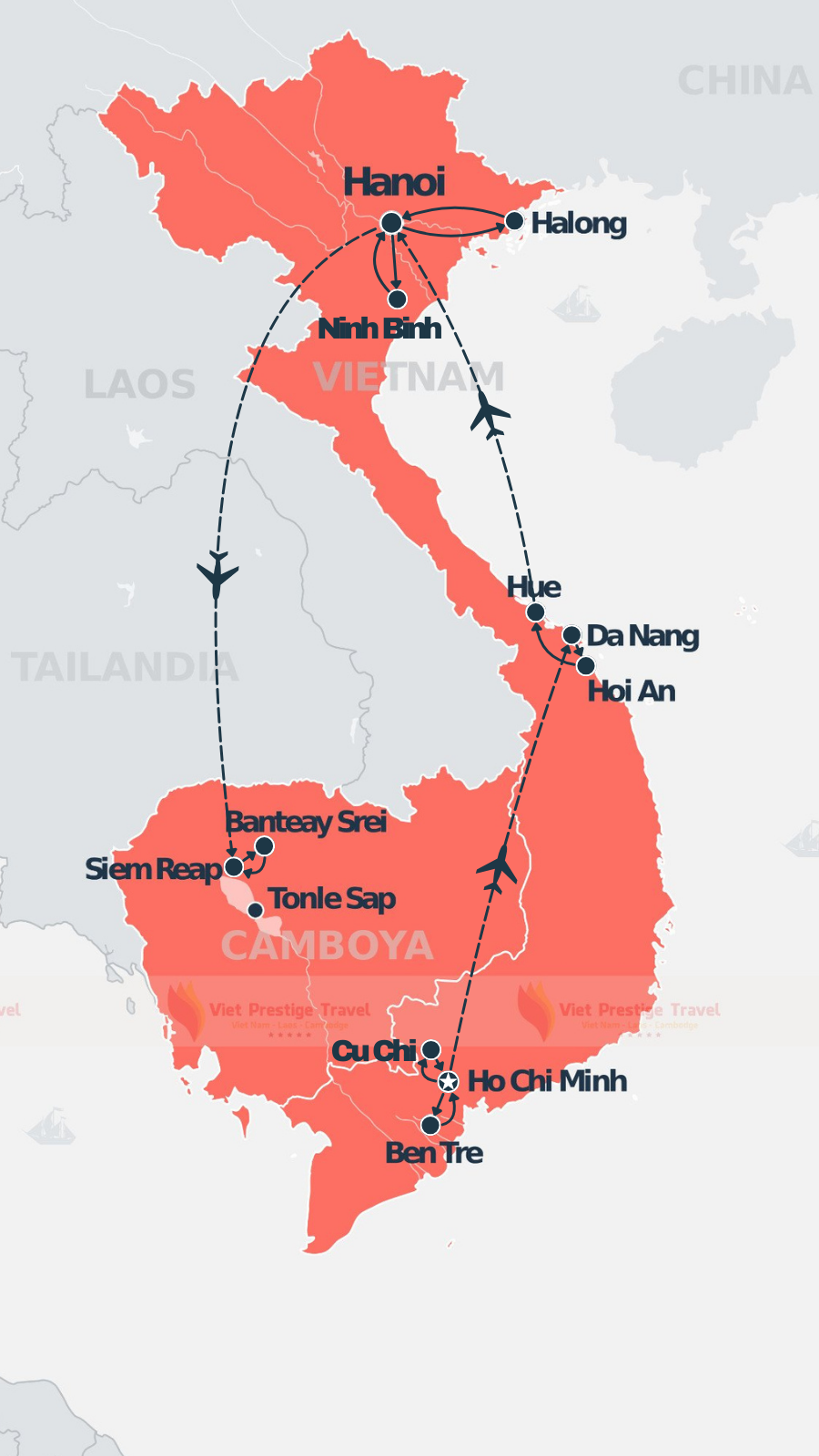 Phnom Penh - Siem Reap - Cidade de Ho Chi Minh - Delta do Mekong - Hue - Hoi An - Hanói - Ninh Binh - Baía Ha Long