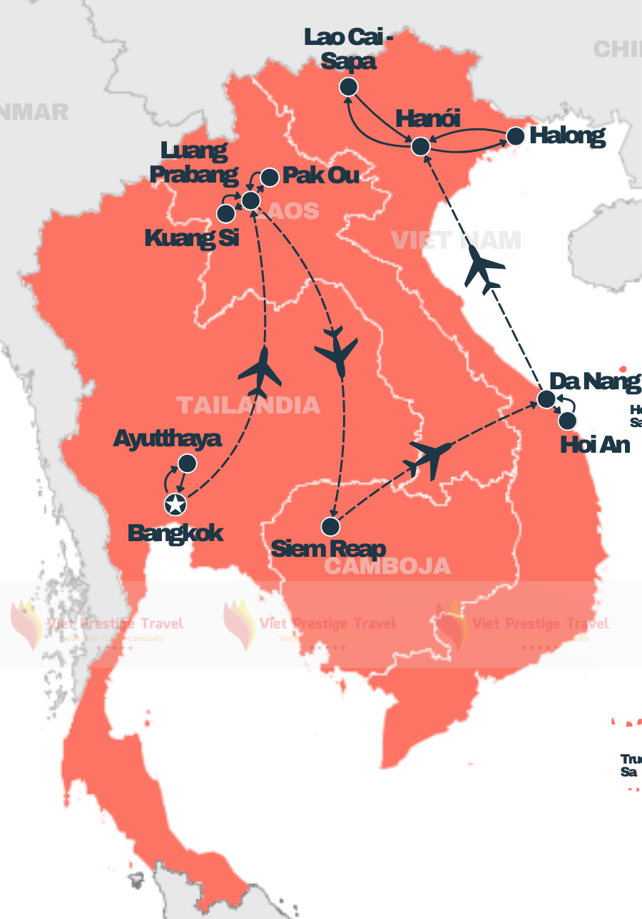 Bangkok - Luang Prabang - Siem Reap - Da Nang - Hoi An - Hanói - Ninh Binh - Baía de Halong