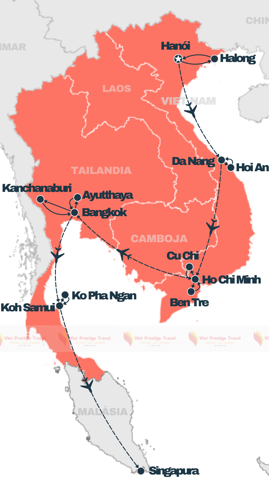 Singapura - Hanói - Ninh Binh - Baía de Halong - Da Nang - Hoi An - Siem Reap - Bangkok - Chiang Rai - Chiang Mai