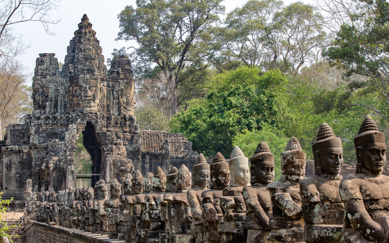 ▪️ Explore as ruínas antigas de Angkor, incluindo o Portão Sul de Angkor Thom, o Templo Bayon, o Terraço dos Elefantes e Angkor Wat, um templo do século XII de 210 hectares.