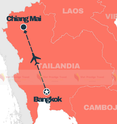 ▪️ Hoje faremos um breve vôo doméstico para Chiang Mai. Na chegada, você será recebido e transferido para hotel Chiang Mai, um refúgio de bem-estar no norte da Tailândia.