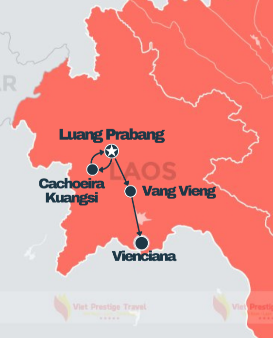 Explore o Laos em uma jornada de 7 dias e 6 noites. De Luang Prabang a Vientiane, descubra sua beleza única. Desfrute de um passeio em Tuk Tuk Vintage, maravilhe-se com a Cachoeira Kuangsi e absorva a energia de Vang Vieng. Termine em Vienciana, imerso em sua cultura fascinante.