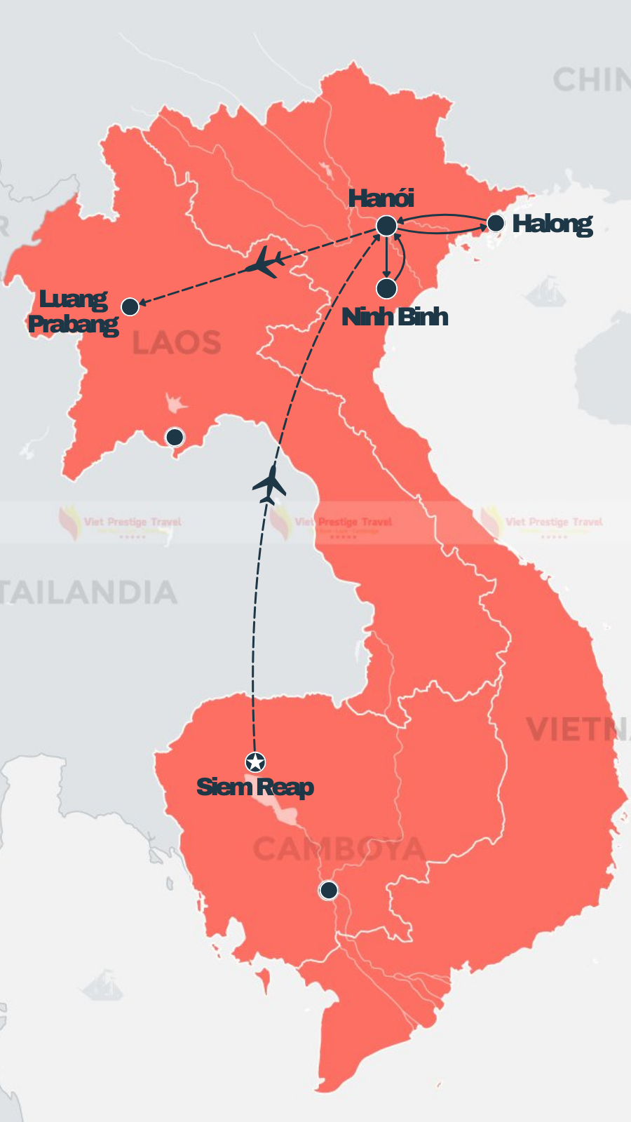 Cidade de Ho Chi Minh - Hue - Hoi An - Siem Riep - Luang Prabang - Hanói - Ninh Binh - Baía de Ha Long