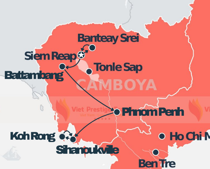 - Siem Reap: onde você será cativado pela majestade dos templos de Angkor. Explore os intrincados detalhes de Angkor Thom, maravilhe-se com a grandiosidade de Angkor Wat e encante-se com a delicadeza de Banteay Srei.