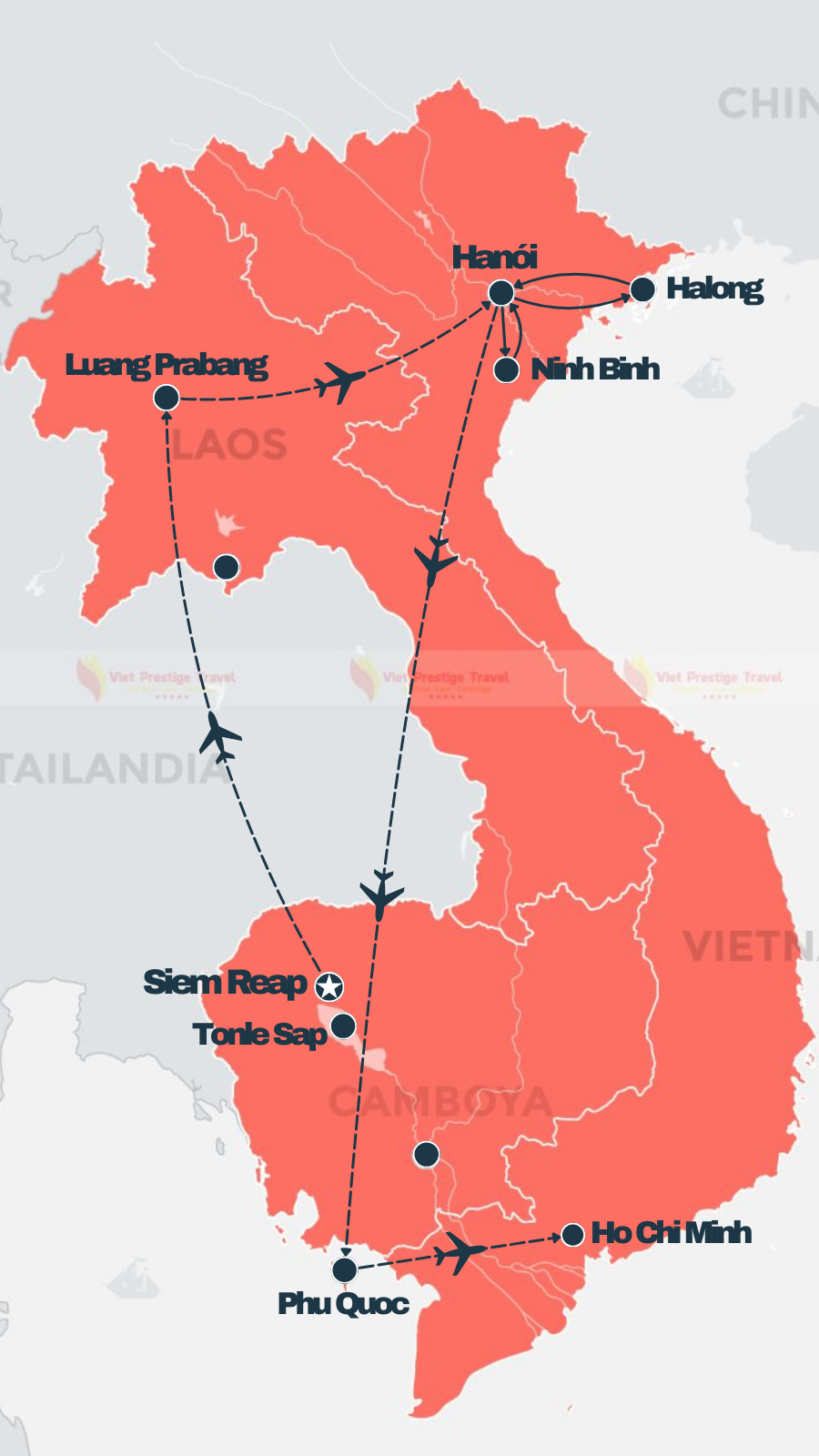 Cidade de Ho Chi Minh - Hue - Hoi An - Siem Riep - Luang Prabang - Hanói - Ninh Binh - Baía de Ha Long