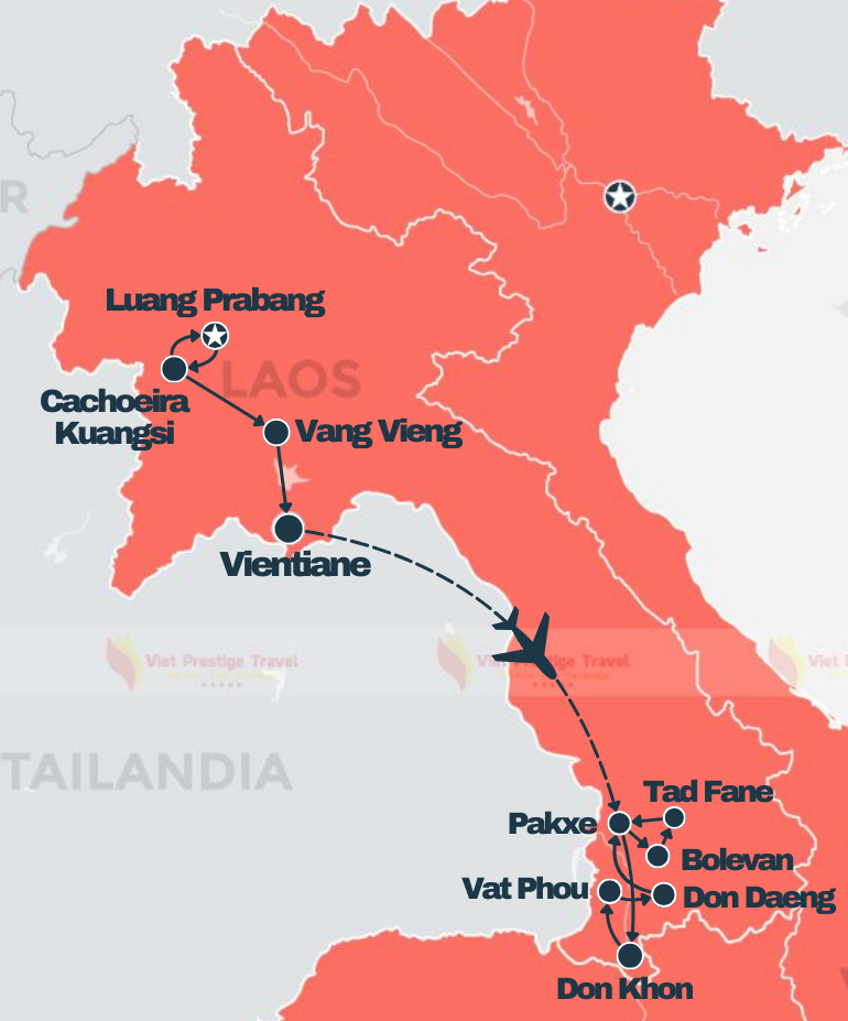 Embarque em uma jornada épica para descobrir a natureza exuberante de Laos em nosso tour de 10 dias e 9 noites. De Luang Prabang a Vientiane, explore paisagens deslumbrantes, cachoeiras magníficas e templos antigos. Prepare-se para uma aventura inesquecível em meio à beleza natural e à cultura cativante de Laos.