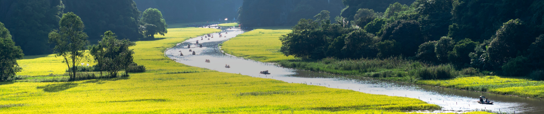 ▪️ Depois, partiremos de Hoa Lu para Trang An, onde faremos um passeio de barco por 2 horas para visitar o primeiro Patrimônio Cultural e Natural do Vietnã pela UNESCO. Em seguida, visitamos a Pagode de Bich Dong, onde veremos três pagodas antigas do século XVII.