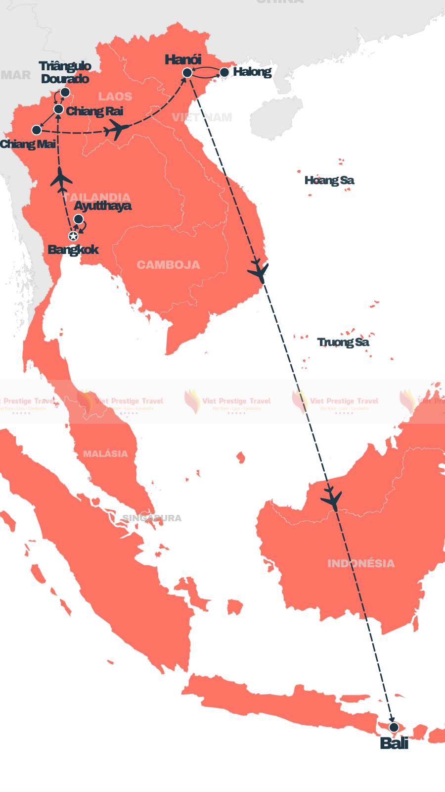 Explore a beleza exótica da Tailândia, Vietnã e Bali em nossa viagem de 16 dias. Explore o encanto do norte da Tailândia durante 14 dias, com destinos como Bangkok, Rio Kwai, Cachoeiras Erawan e Chiang Mai. Reserve conosco e ganhe descontos exclusivos para futuras viagens. Uma experiência inesquecível com Viet Prestige Travel.