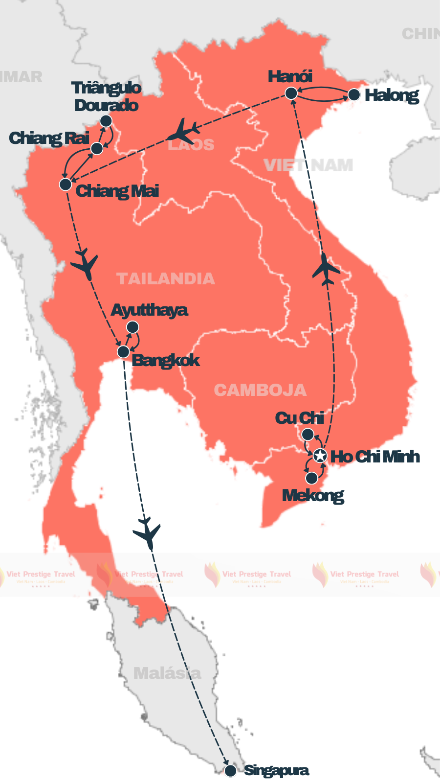 Singapura - Hanói - Ninh Binh - Baía de Halong - Da Nang - Hoi An - Siem Reap - Bangkok - Chiang Rai - Chiang Mai