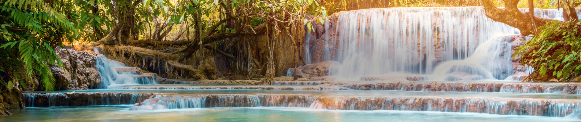 - Cachoeira Kuang Si: Linda cachoeira com muitas camadas de água azul clara, formando piscinas naturais.
