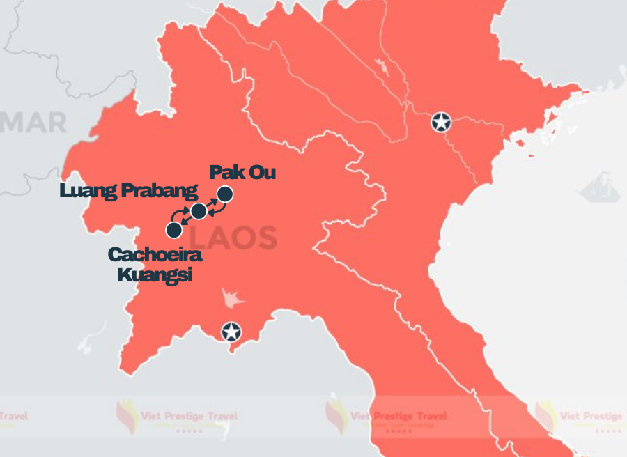 - Luang Prabang: muitos pagodes e templos antigos, como Wat Xieng Thong, Wat Mai. Além disso, em Luang Prabang tem cerimônia de esmola pela manhã, visita ao museu do Palácio Real, mercado noturno com produtos artesanais.