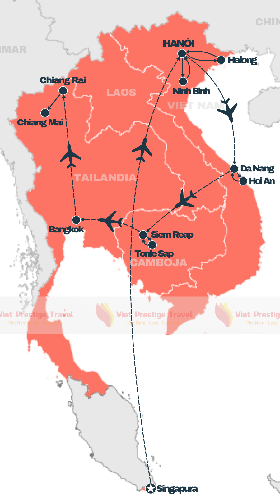 Hanói - Baía de Ha Long - Da Nang - Hoi An - Cidade de Ho Chi Minh - Bangkok - Ayutthaya - Kanchanaburi - Koh Samui - Ko Pha Ngan - Singapura