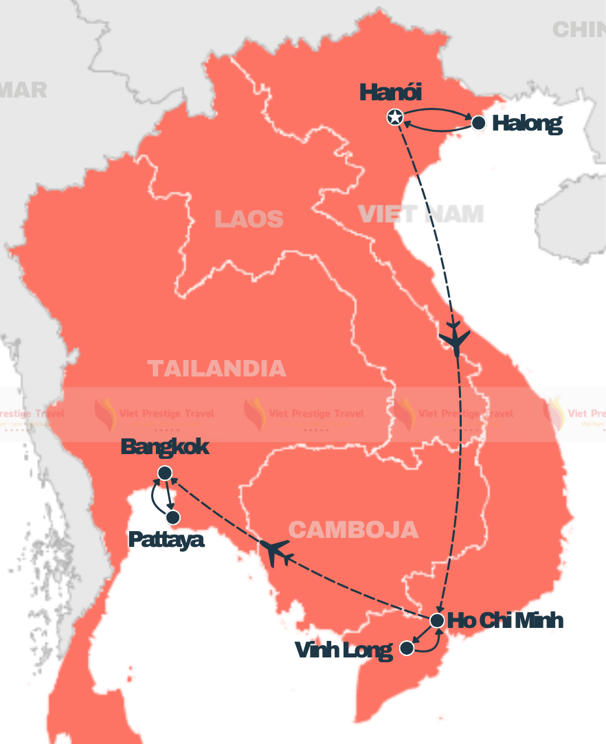 Experimente o melhor do Vietnã e Tailândia em uma viagem de 12 dias com Viet Prestige Travel, uma empresa local confiável. Explore a vibrante Cidade de Ho Chi Minh, a histórica Hanói, a deslumbrante Baía de Halong, o pitoresco Delta do Mekong, e os encantos de Bangkok e Pattaya. Uma jornada inesquecível pelos principais destinos da Ásia!