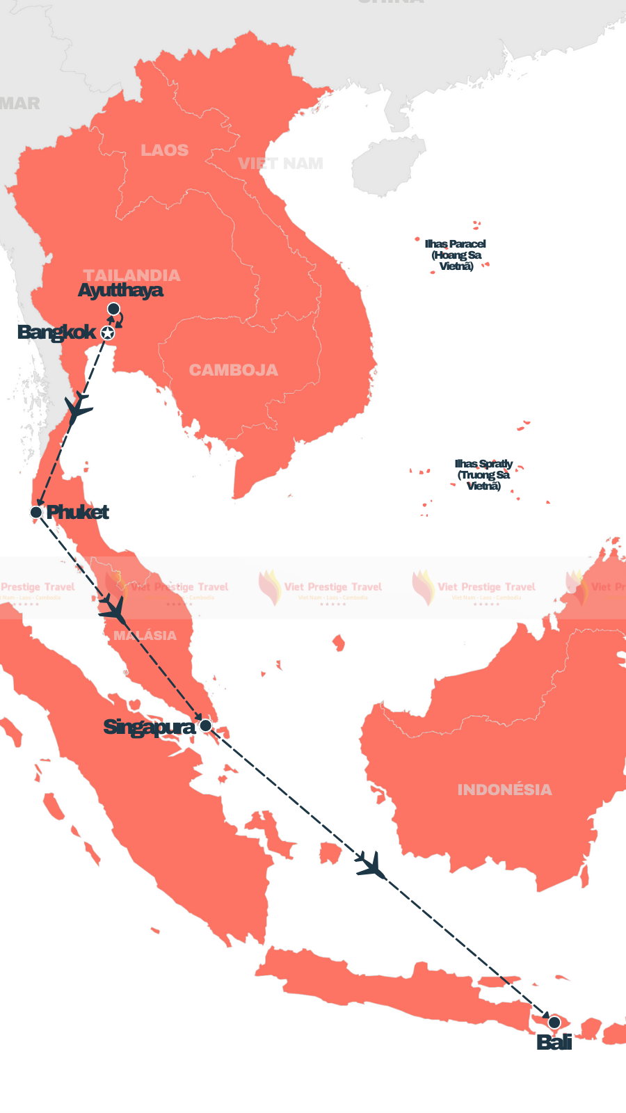 Todos os arranjos de viagem que fornecemos ou que são vendidos através de nós não são uma oferta nossa para vender quaisquer arranjos de viagem, mas um convite a você para fazer uma oferta aos fornecedores dos arranjos. Estamos livres para aceitar essa oferta em nome desses fornecedores ou rejeitá-la. A Viet Prestige Travel atua apenas como agente de reservas para o fornecedor relevante e, como tal, não tem responsabilidade alguma perante você por qualquer morte, lesão pessoal ou perda de qualquer natureza que você possa sofrer, a menos que causada por nossa negligência.