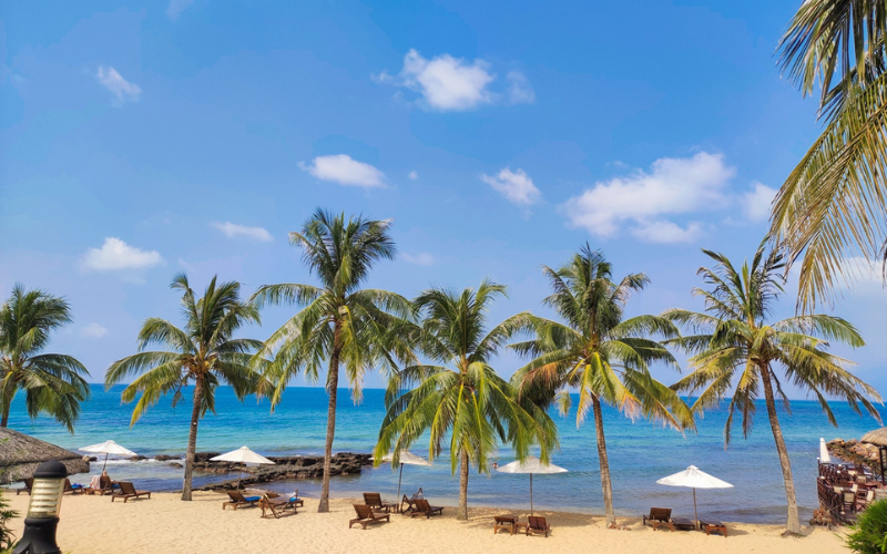 A Praia de Sao é considerada uma das melhores praias de Phu Quoc, famosa por sua areia branca e fina e águas calmas de tom azul-turquesa. É ideal para quem busca praias tranquilas em Phu Quoc.